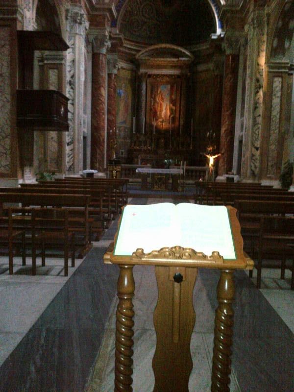 While I was in this church a man walked in, stopped at the open Bible and read the Scripture readings for today, and then went on his way to work. What a great idea... which was probably more common when not everyone could afford a Bible. Don't believe that nonsense that Catholics weren't allowed to read the Bible. After the disaster of the Reformation where each man interpreted the Bible for himself (resulting in 30,000+ Protestant denominations and counting), Catholics were not encouraged to make themselves into the sole interpreting authority of the Scriptures, but rather were encouraged to seek the mind of the Church (which wrote the Bible, BTW) on how it had historically interpreted difficult passages... but were they permitted to read the Bible, yes.